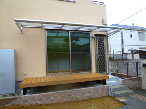 木の温もりを大切に作られた、建物に合わせた木目調のエクステリアパーツ。